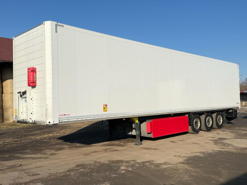 NÁVĚS SCHMITZ CARGOBULL SCB S3B FERROPLATS, VYROBENO 07/2019, PERFEKTNÍ STAV, NAJETO 481000 KM, SKŘÍŇ BEDNA KOFFER, PNEU 60%, ERTIFIKAT TUV NORD SCHMTZ, ROZMĚRY LOŽNÉ PLOCHY: DxŠxV 13625x2480x2700 mm, NÁPRAVY SCHMITZ, PALETOVÝ KOŠ, ELEKTRONICKY UZAMYKATELNÉ VRATA.